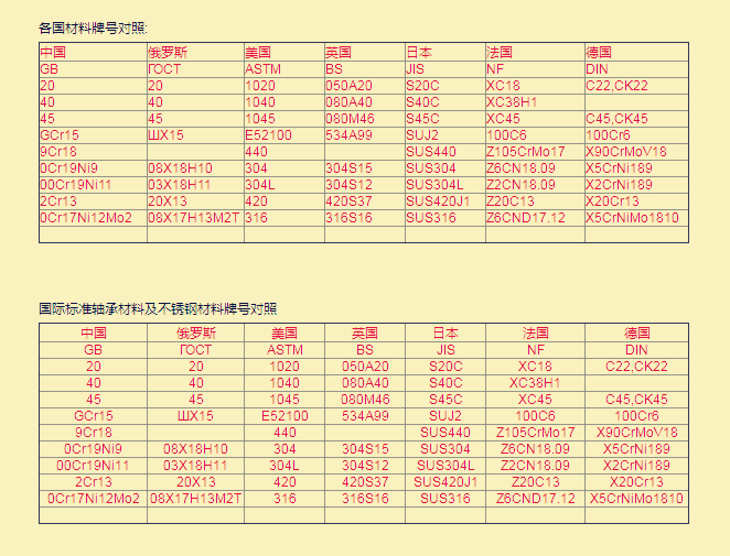 每個國家對于不銹鋼軸承的材料牌號是不一樣的,大家在選購的是應該要注意區(qū)分: